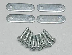 Zinc plated steel - light and strong. Includes (4) straps and (8) #2 x 7/16" slotted sheet metal screws. Measures 3/4" (19.05 mm). 4 sets/pkg. Weight: 1 gram / set.