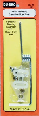 The DU-BRO Steerable Nose Gear is a dependable, shock-absorbing nose wheel system designed to give RC pilots smoother taxiing, better steering control, and improved ground handling. Built from heavy-duty 5/32" (4 mm) wire , this nose gear is strong enough to handle the demands of sport, trainer, and scale aircraft while still offering the flexibility needed to absorb bumps and rough landings. Models #152 and #153 come as complete nose gear systems. Each includes:
