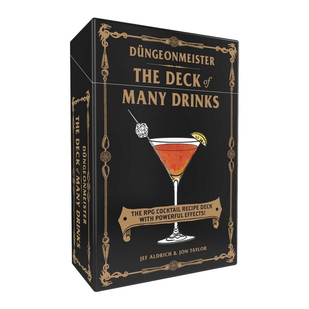 Düngeonmeister: The Deck of Many Drinks lets gamers add some excitement to their game with 50 RPG-inspired cocktails, each paired with a related effect compatible with 5E and other systems. Players can draw a card at random to let chance decide their fate, then look up the drink recipe in the included booklet to mix up the cocktail. The drink’s effect strikes the player’s character as soon as they start to imbibe.