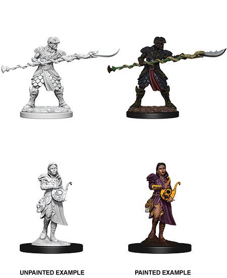 Dungeons & Dragons Nolzur's Marvelous Miniatures showcase intricately detailed figures that come primed and ready to paint. These miniatures include deep cuts to facilitate easier painting, and clear packaging lets customers see precisely what they're getting. Key Features: Features characters, monsters, and scenery from the Dungeons & Dragons universe; Little to no assembly required; Pre-primed and ready for painting; Some miniatures include translucent parts. This 2-count monster pack contains 1 Male Yuan-Ti Pureblood Paladin and 1 Female Yuan-Ti Pureblood Bard.