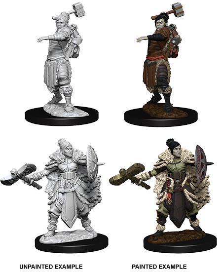 These Dungeons & Dragons Nolzur's Marvelous Miniatures feature outstanding detail and arrive primed for painting straight from the box. Sculpted deep cuts make the painting process more accessible. Clear packaging lets you view the contents prior to purchase. The 2-count character pack contains both low-level and high-level versions of the Female Half Orc Barbarian from the Dungeons & Dragons universe, with little assembly needed and some miniatures featuring translucent parts.