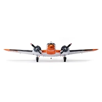 The E-flite Beechcraft D18/RC-45J 1.5m is the most convenient, capable, and easiest to fly scale model of one of general and military aviation's most recognizable aircraft! Its twin brushless power system, with specially tuned motors, delivers better-than-scale-like performance when using 3S 3200-5000mAh batteries. Or it can deliver even more speed and unlimited vertical performance with a 4S battery – no modifications or upgrades required. It's also equipped with an exclusive Spektrum Avian Dual 40-amp Smart Lite ESC, which can provide a variety of real-time power system telemetry data with both Smart and non-Smart batteries via compatible receivers (including the AR631+ installed in the BNF Basic version) and Spektrum AirWare-equipped transmitters. The BNF Basic version is also the only Twin Beech model equipped with enhanced AS3X+ and optional-use SAFE Select technologies, making it the easiest to fly D18/RC-45J yet. Factory-finished in a highly visible and fully painted white with orange Navy trim scheme, the lightweight yet durable, composite-reinforced EPO airframe features an abundance of scale detail — molded-in panel lines and hatches, antennas, exhaust stacks, a pilot figure, and more. Included functional flaps, twin rudders, and LED navigation lights elevate your experience to the next level. Factory-installed electric retracts with durable metal components make it possible to take off from a wide variety of surfaces, including paved runways, packed dirt, and even grass. The unique 3-piece wing design makes storage and transport as convenient as possible, as the center section houses the main gear, and all sections feature innovative hands-free connections. Best of all, because no glue is required for final assembly, you can have the Beechcraft D18/RC-45J 1.5m ready to fly in less time than it takes to charge a battery!