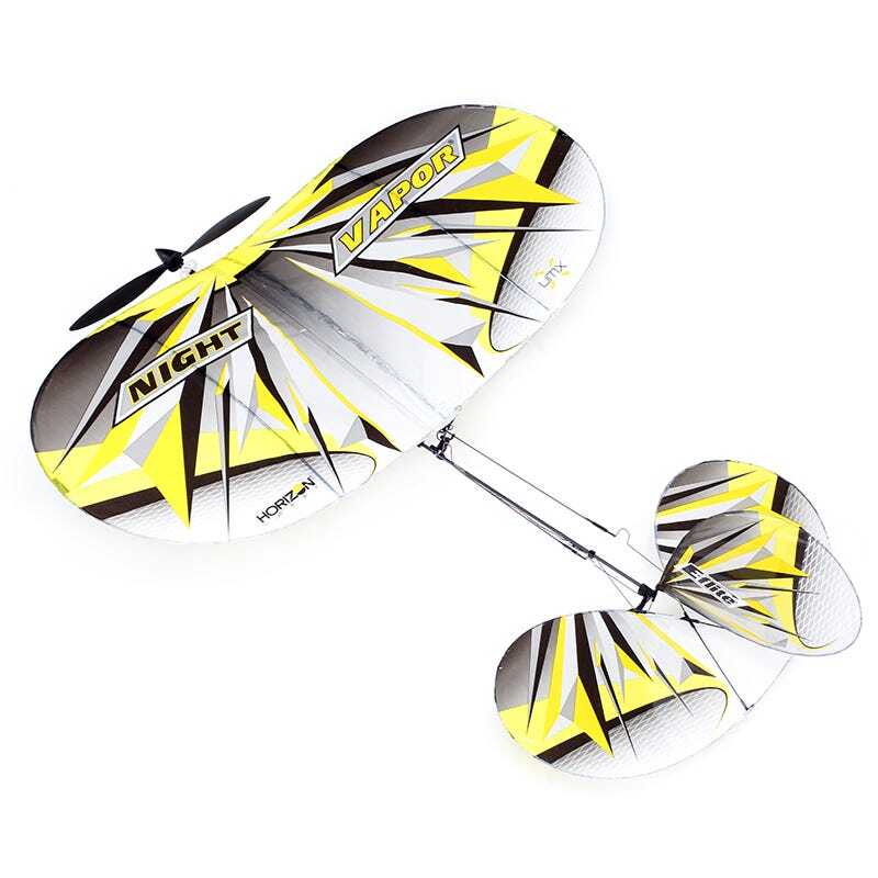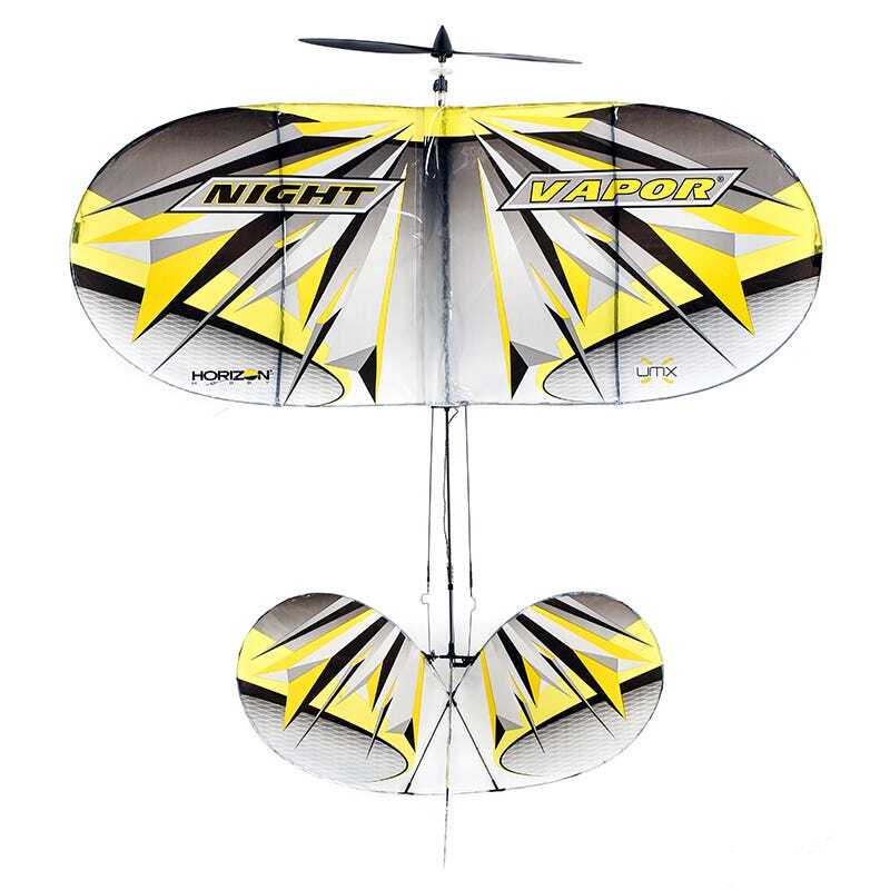 Over its nearly decade-long history, the original ParkZoneĀ® Night Vapor slow flyer became a favourite of a wide range of pilots for its unique indoor and outdoor, day or night, versatility. There was simply nothing else like it. Now the E-fliteĀ® UMX Night Vapor picks up where that popular ultra-micro aircraft left off, adding exciting upgrades that make it more fun than ever before! With enhanced durability, the UMX Night Vapor is now even better at handling bumps and collisions when flying indoors in suitable spaces such as large rooms or gymnasiums, or outside almost anywhere in calm to low wind conditions. Plus, you can choose between two fully factory-assembled versions: the convenient, all-in-one-box Ready-To-Fly (RTF) that includes a transmitter, battery, and charger, or the Bind-N-FlyĀ® (BNF) Basic that helps you lower costs by using your own compatible Spektrum transmitter, battery, and charger. Either way, you can be flying almost anywhere, day or night, in just the time it takes to charge a battery!