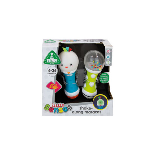 Explore the bright, happy faced maracas for fun filled sensory stimulation. Shake the maraca with beads for amusing rattling sounds. Shake the other maraca to watch the glowing lights change colour and listen to the fun electronic musical sounds and melodies. Change between free exploration of sound effects in the music mode and shaking along to two catchy melodies in the play along mode.