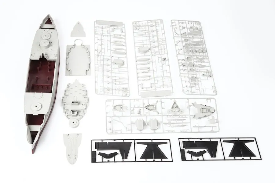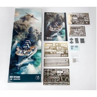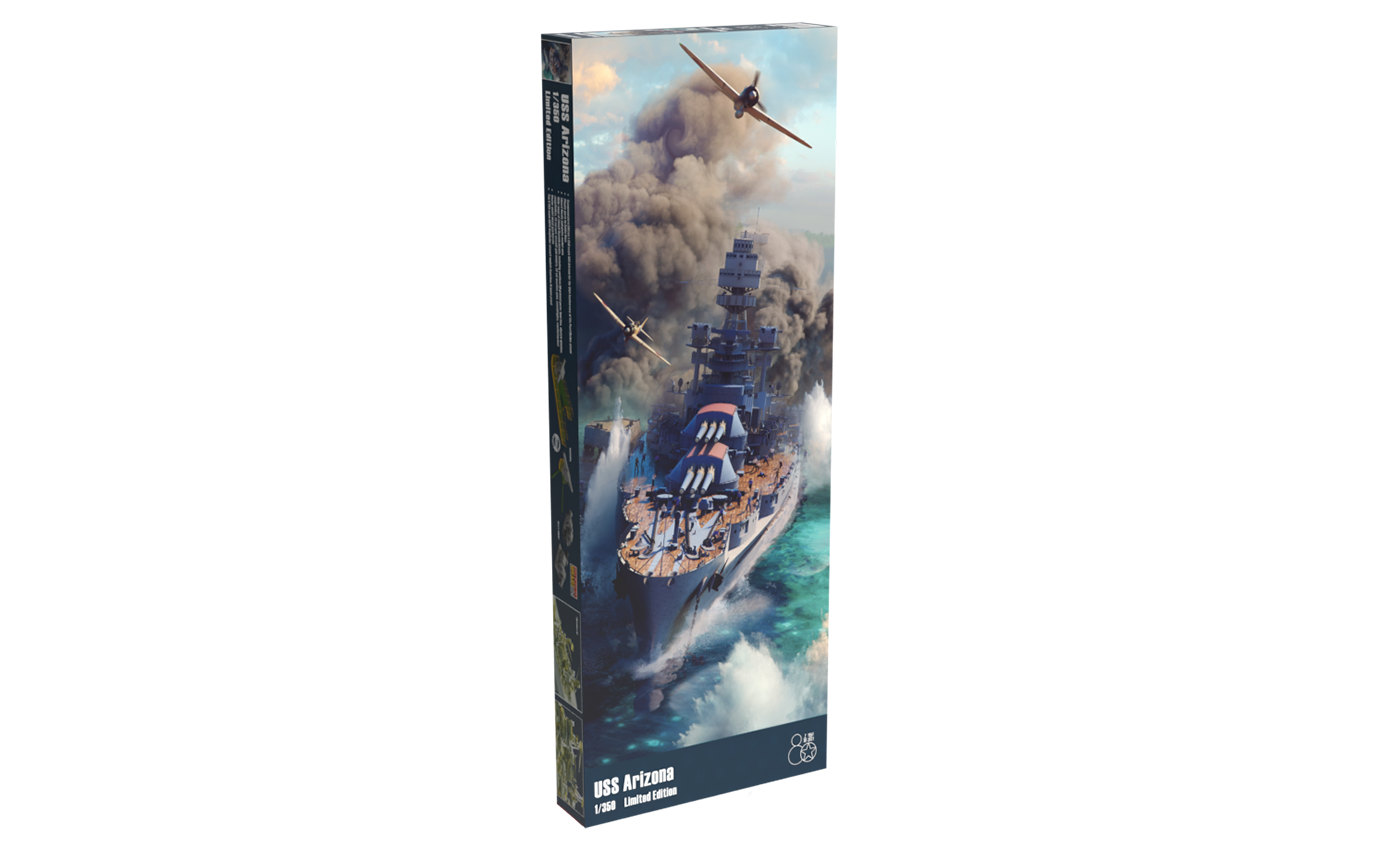 Limited edition kit of US battleship USS Arizona (BB-39) with a tragic fate at Pearl Harbor on December 7, 1941, in 1/350 scale. - Plastic parts: Hobby Boss - Marking options: 1 - Decals: Eduard - PE parts: yes - Painting mask: no - Resin parts: yes, mooring bollards, rangefinders, reels, machine guns Browning M1917, 25-inch (127 mm) guns Mk.10, ventilation pipe, searchlights, observer planes OS2U Kingfisher - Extra: set of barrels from Master