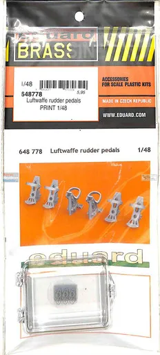 Free Shipping For Orders Over $150 To Metro Areas* (Online orders only)Description Brassin set the rudder pedals for luftwaffe WW2 a/c in 1/48 scale. The set consists of 3 pairs of pedals. Made by direct 3D printing.