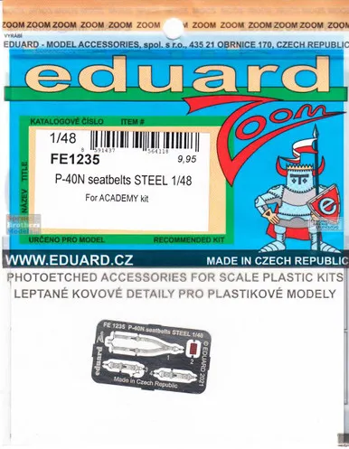 Eduard 1/48 P-40N (Academy) Seatbelts Steel Colour Photo Etch Set [FE1235]