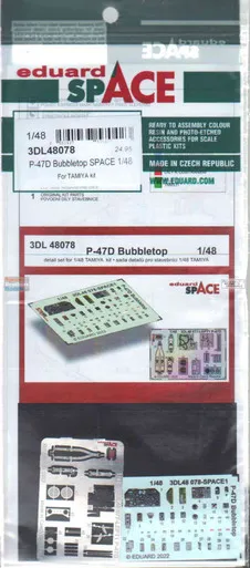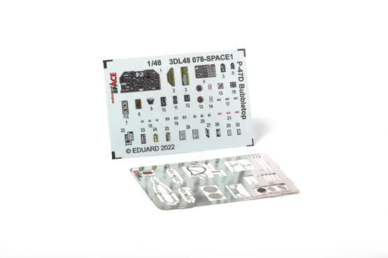 Eduard 3D decals for main and sidewall instrument & control panels, plus steel photo-etched details and seat belts. For use with 1/48 P-47D Razorback Space kit.