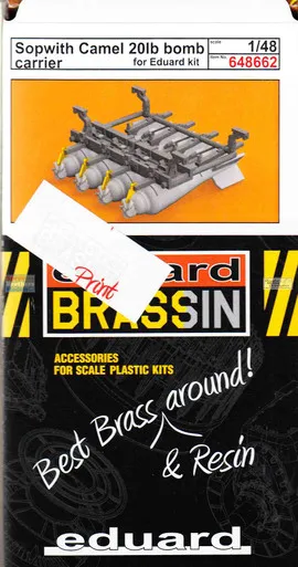 Free Shipping For Orders Over $150 To Metro Areas* (Online orders only)Description Brassin set the bomb carrier for Sopwith Camel in 1/48 scale. The set consists of the carrier and four bombs.