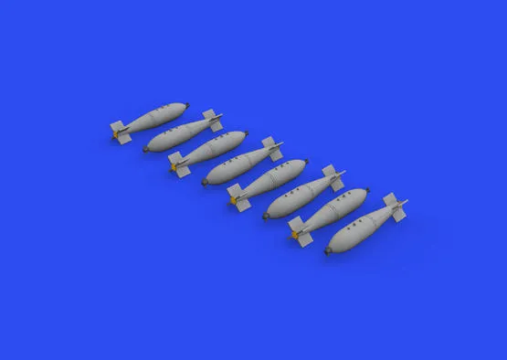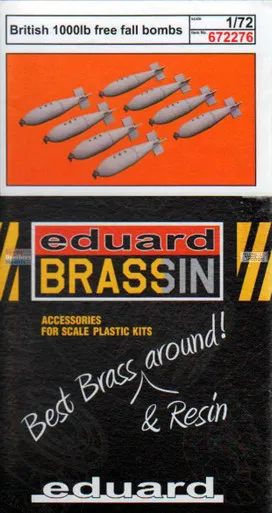 Free Shipping For Orders Over $150 To Metro Areas* (Online orders only)Description Brassin set British 1000lb bombs in 1/72 scale. The set consists of 8 bombs. Set contains: - resin: 16 parts - decals: yes - photo-etched details: yes - painting mask: no