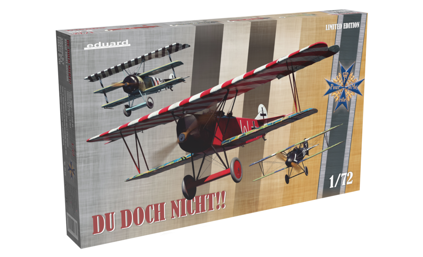 Description Limited edition kit of aircraft of German WWI flying ace Ernst Udet and his Albatros D.V´s, Fokker Dr. I´s and Fokker D.VII´s in 1/72 scale. - plastic parts: Eduard