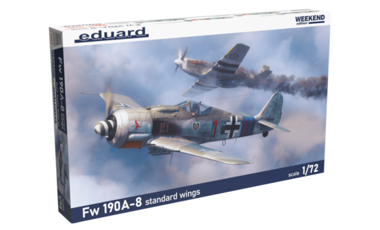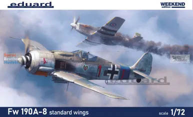Weekend edition kit of German WWII fighter aircraft Fw 190A-8 with standard wings in 1/72 scale. - plastic parts: Eduard - No. of decal options: 4 - decals: Eduard - PE parts: no - painting mask: no - resin parts: no