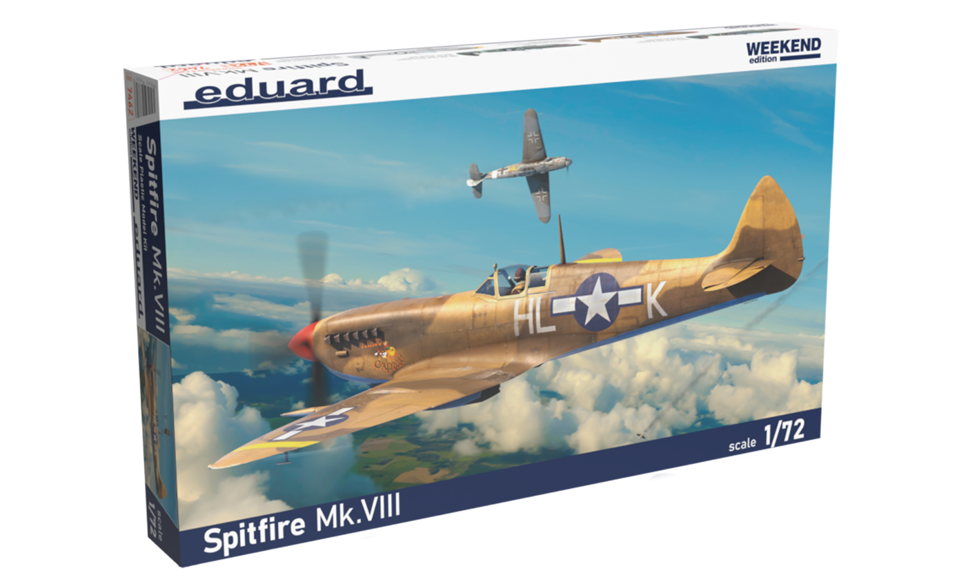 Description Weekend edition kit of British WWII fighter aircraft Spitfre Mk.VIII in 1/72 scale. - plastic parts: Eduard