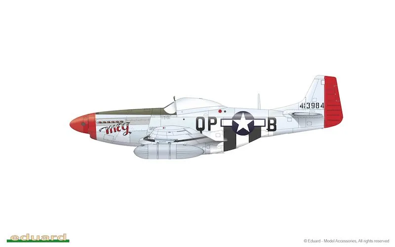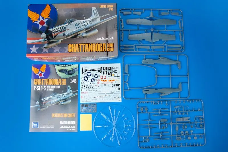 Limited Edition kit of US WWII fighter aircraft P-51D in 1/48 scale. The kit is focused on P-51D-5s with a fin fillet. The kit is released to coincide with the IPMS Nats Chattanooga, TN. plastic parts: Eduard No. of decal options: 6 decals: Cartograf PE parts: yes, pre-painted painting mask: yes resin parts: no