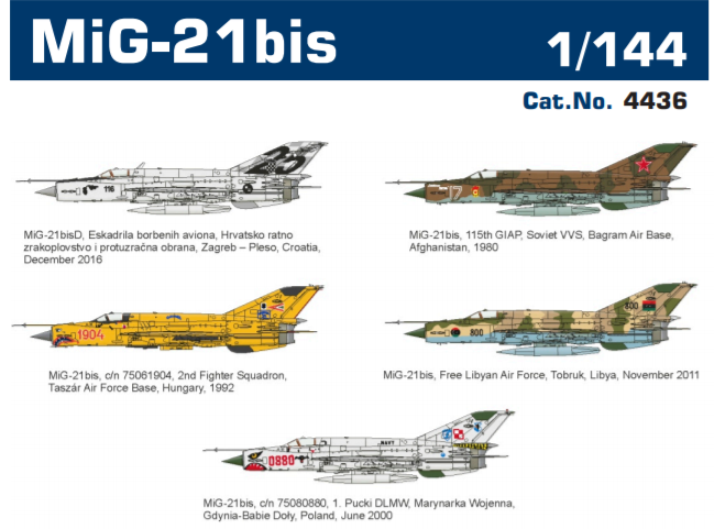 Description Super 44 edition kit of Soviet Cold war jet fighter aircraft MiG-21bis in 1/144 scale. - plastic parts: Eduard