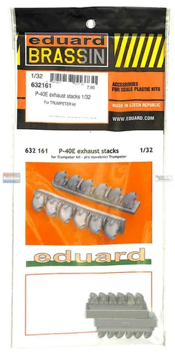 Free Shipping For Orders Over $150 To Metro Areas* (Online orders only)Description Brassin set - the exhaust stacks for P-40E in 1/32 scale. Recommended kit: Trumpeter Easy to assemble, replaces plastic parts.