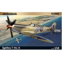 Description The ProfiPACK edition kit of British WWII fighter aircraft Spitfire F Mk.IX in 1/48 scale. - plastic parts: Eduard - marking options: 5 - decals: Eduard - PE parts: pre-painted - painting mask: yes - resin parts: no This is an unassembled plastic model kit. Assembly and painting required. Paint and glue is not included and is sold separately. For ages 14 years old and up. NOT A TOY.