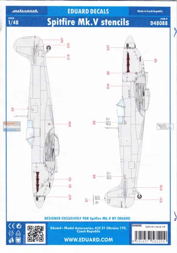 Eduard D48088 1/48 Spitfire Mk.V stencils Decals