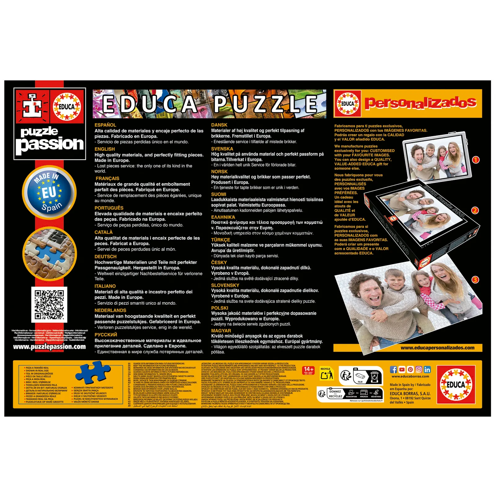 Educa® offers you the most complete collection of Puzzles for Adults on the market, with sizes ranging from 500 to 42000 pieces and with the best pictures and the most entertaining characters. Approximate size of the assembled puzzle: 214 x 157 cm. 2 bags of 6.000 pieces, includes model sheet.