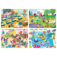 Each box contains 4 puzzles with a different number of pieces each (between 20 and 80) for children to try increasingly difficult puzzles as they grow and learn to put puzzles together. Size of each assembled puzzle: 28 x 20 cm. Subject: Professions (Police, Doctor, Ambulance, Fireman)