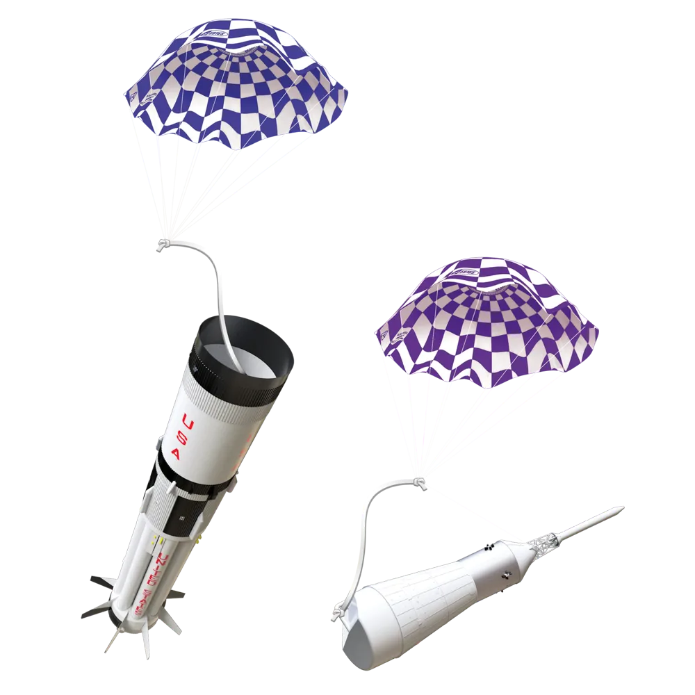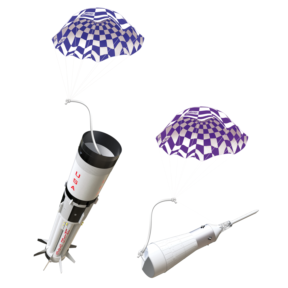 Launch your finished model using one of the recommended Estes engines for a spectacular liftoff and dazzling two-piece recovery under dual parachutes.