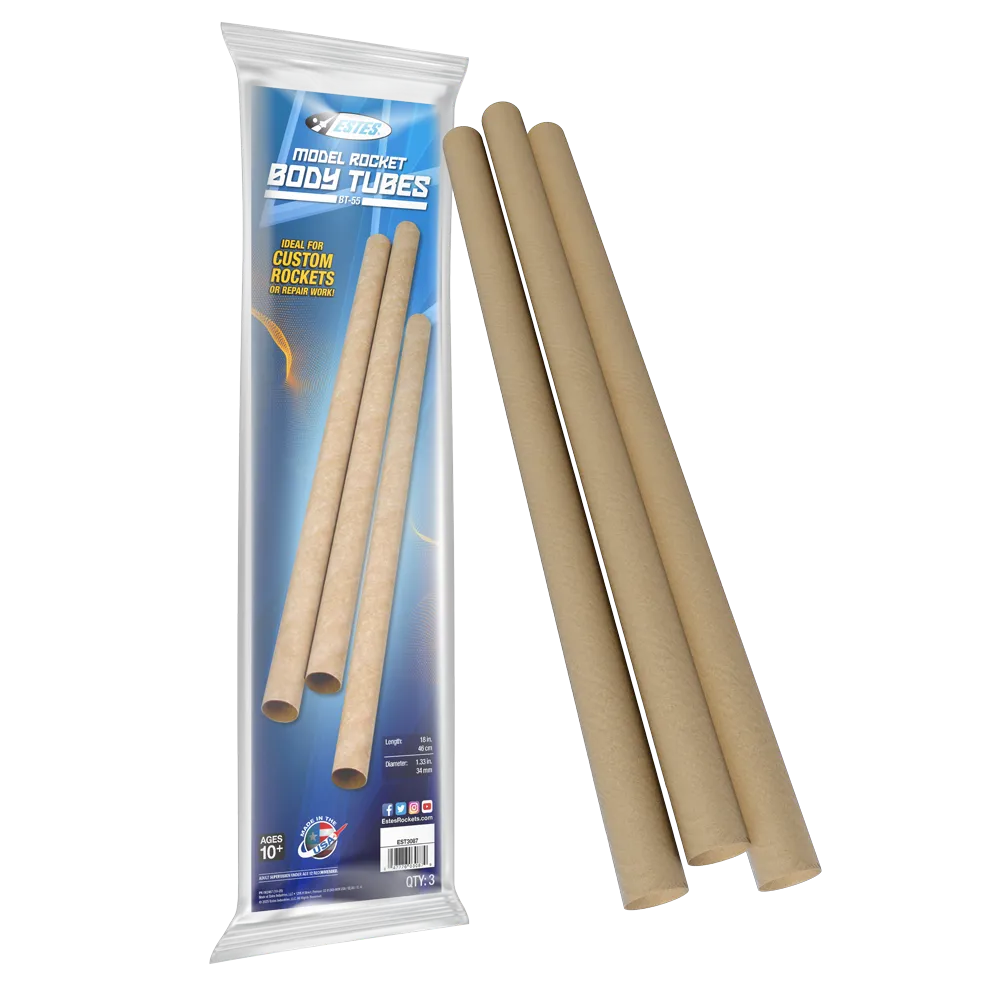 High Quality Construction: Spiral wound paper tube built for strength, durability, and smooth finishes Perfect Fit: Designed for rockets that use the BT-50 body tube size Expandable Design: Use tube couplers to connect tubes of the same diameter for longer custom builds Three Pack Value: Includes three BT-50 body tubes per package for multiple projects Compatible Components: Works with the NC-50 nose cone and other BT-50 sized parts