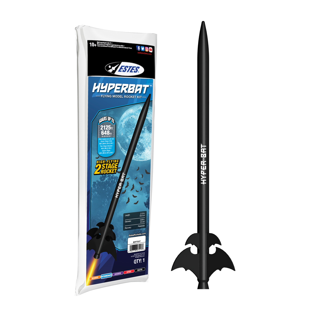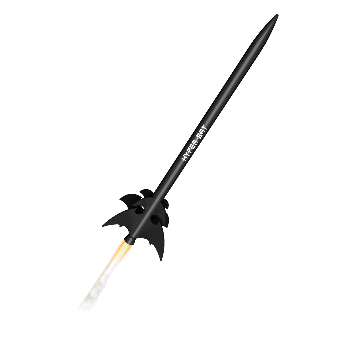 A sporty 2-stage sport rocket standing over 20 inches tall, the Hyper Bat is one impressive rocket. This rocket can be flown as a single stage or 2-stage and can reach out-of-sight heights of 2125 feet.