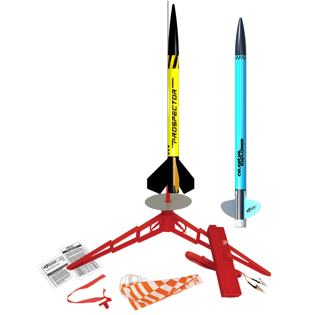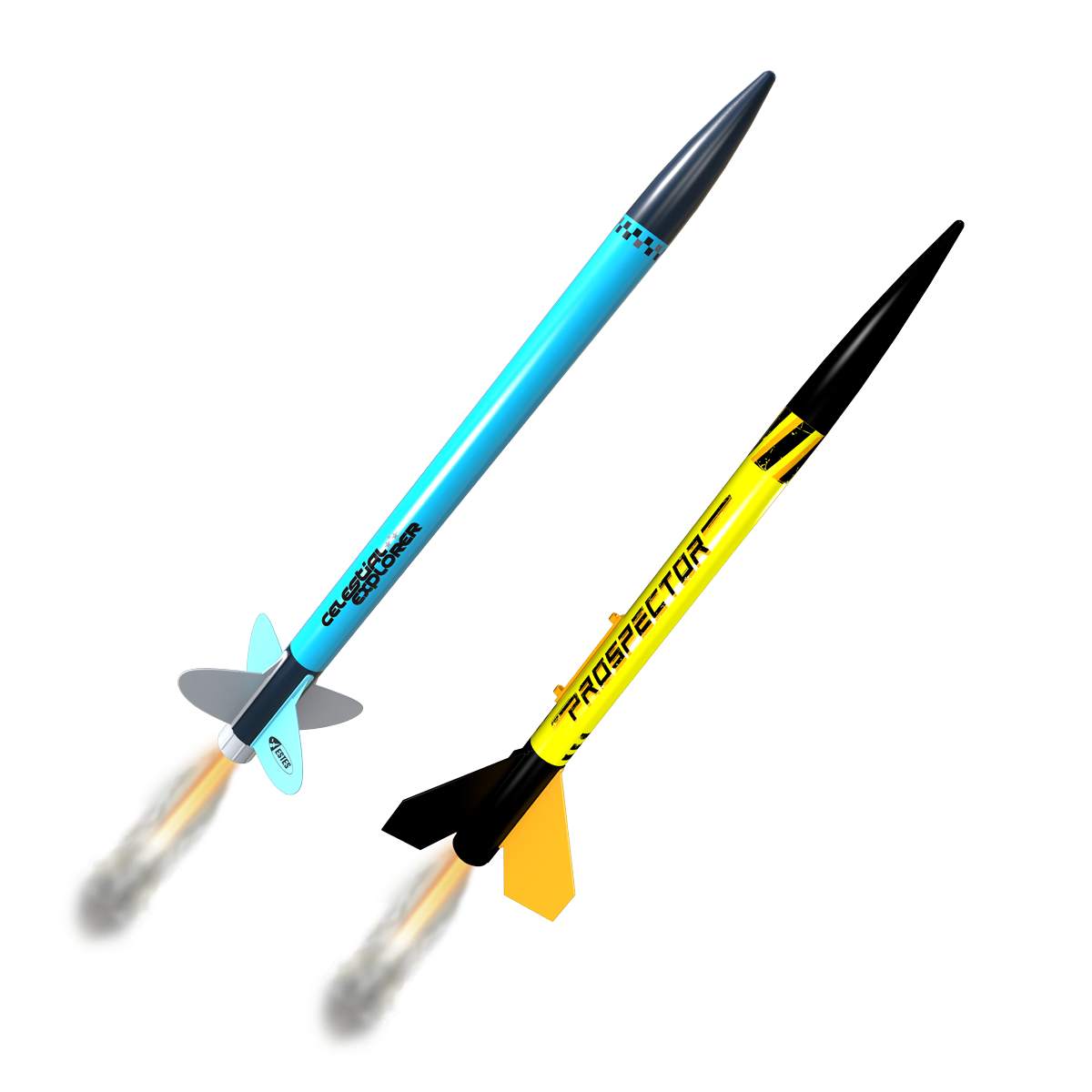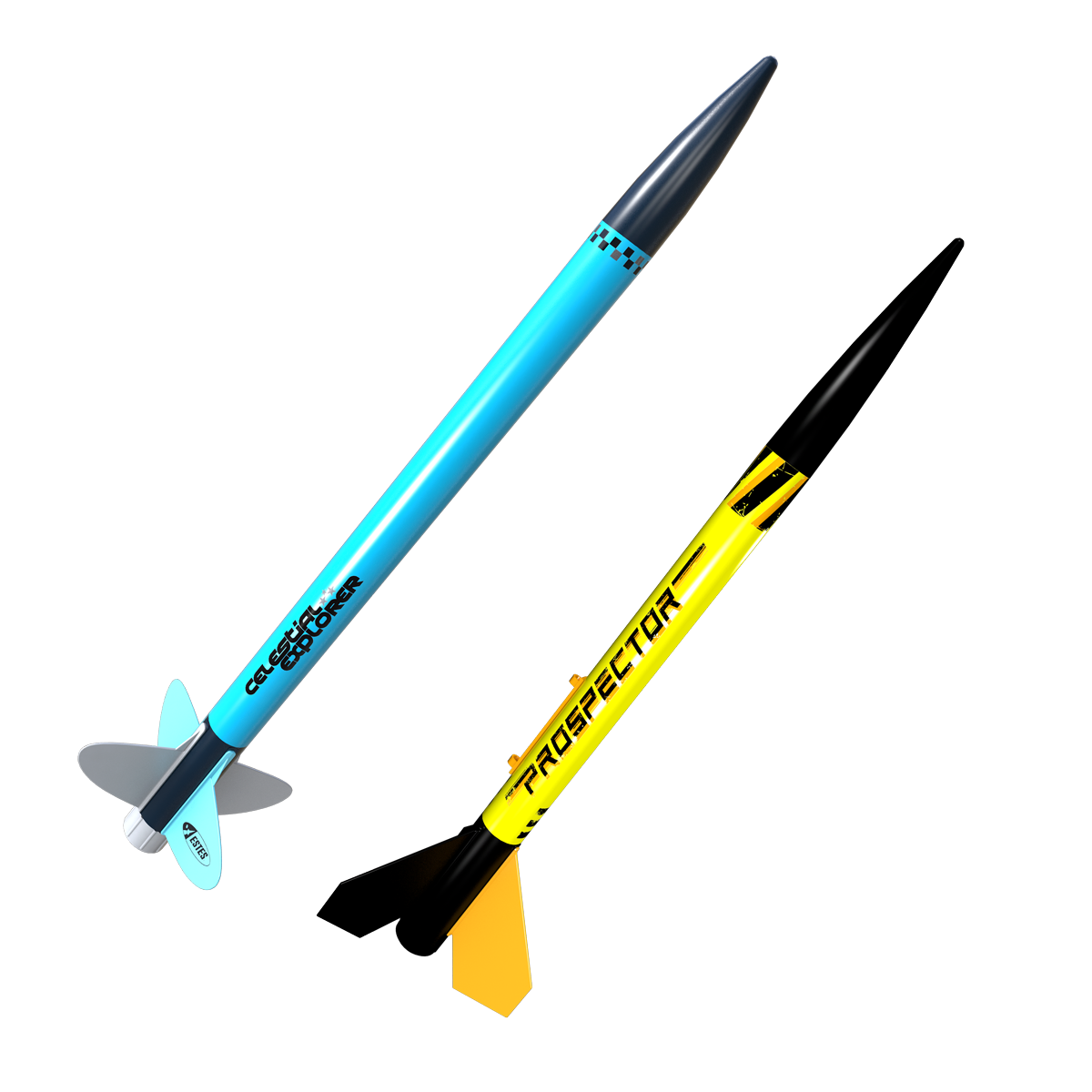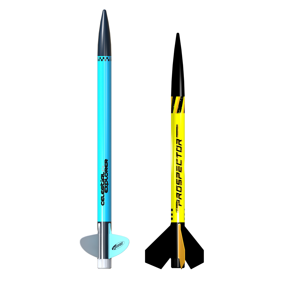 This complete kit gives you the excitement of building and flying two incredible rockets, the sleek Celestial Explorer and the bold Prospector.