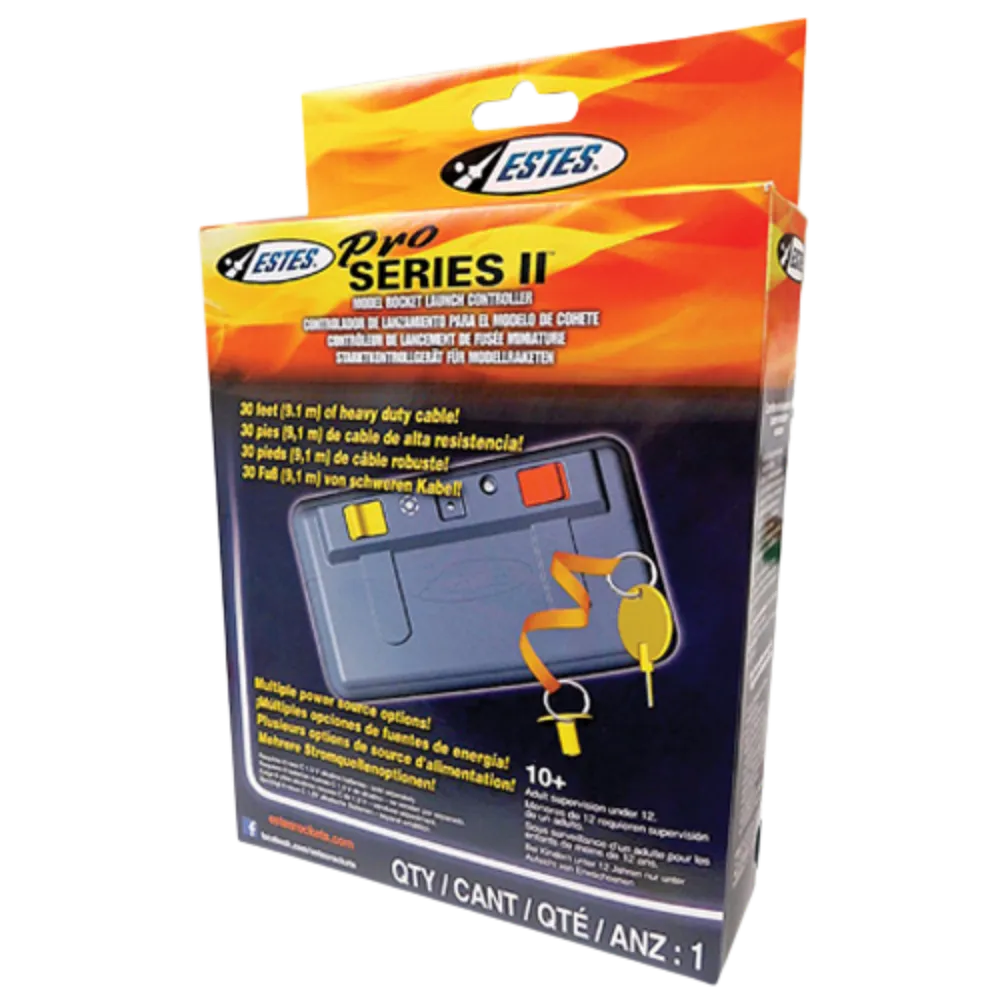 Fully assembled and ready to use, the Pro Series II Launch Controller includes 30 feet (9.1 m) of heavy-duty cable with four alligator clips, giving you extra distance and control on launch day.