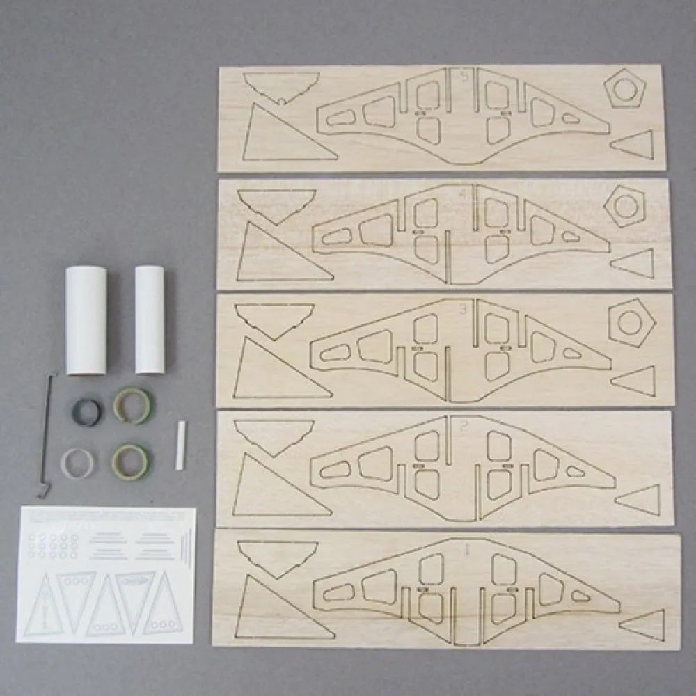 - Laser cut Wood Fins, Waterslide Decal, Helicopter (spin) Recovery