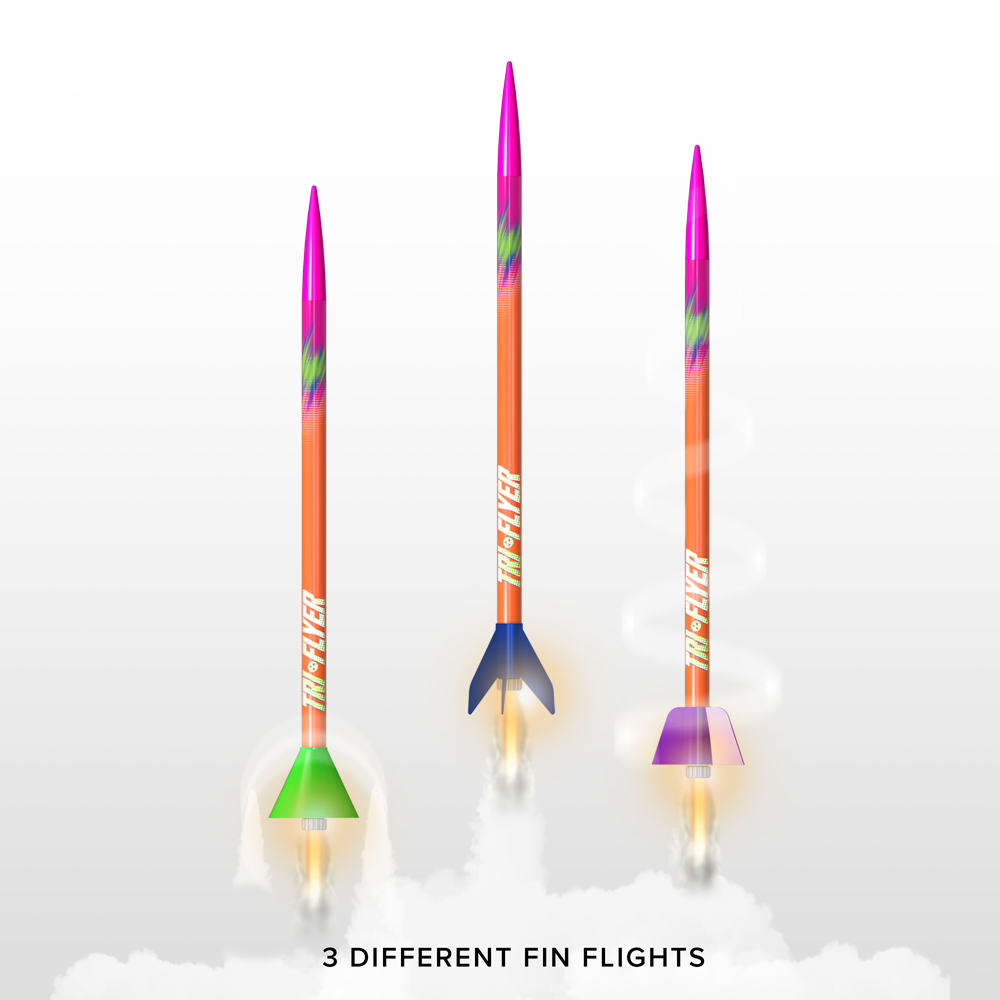Embark on a thrilling journey into the cosmos with this STEM experience, a model rocket designed for beginners and aspiring space explorers. With three fin shapes and two engines included, this kit offers an exhilarating introduction to the world of aerospace engineering. Built with safety and simplicity in mind, the Tri-Flyer features a user-friendly assembly process and a reliable launch system. With five STEM activities included in the booklet, explore the impact of different fin shapes on flight. Launch over and over until you can determine which fin is best for speed, altitude, and landing. Unleash the boundless potential of STEM education and ignite a passion for exploration that will last a lifetime!