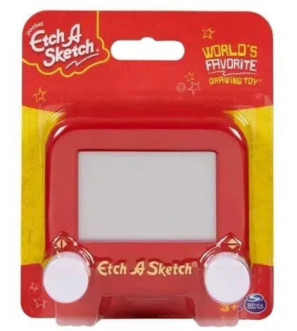 Etch A Sketch Pocket - Pocket Etch A Sketch is a great screen alternative for all ages – no charging, batteries or Wi-Fi needed! Turn the knobs to draw and lines will magically appear on the screen! - Just like Classic Etch A Sketch, the left knob draws left and right and the right knob draws up and down. Turn both knobs to create curved or angled lines! - When you're done a drawing, just shake to erase – then, start the fun all over again! - Pocket Etch A Sketch is easily portable and is the perfect size for travel. No batteries required. Unplug and get shakin’ and erasin’ with Pocket Etch A Sketch! - Official licensed Spinmaster product!