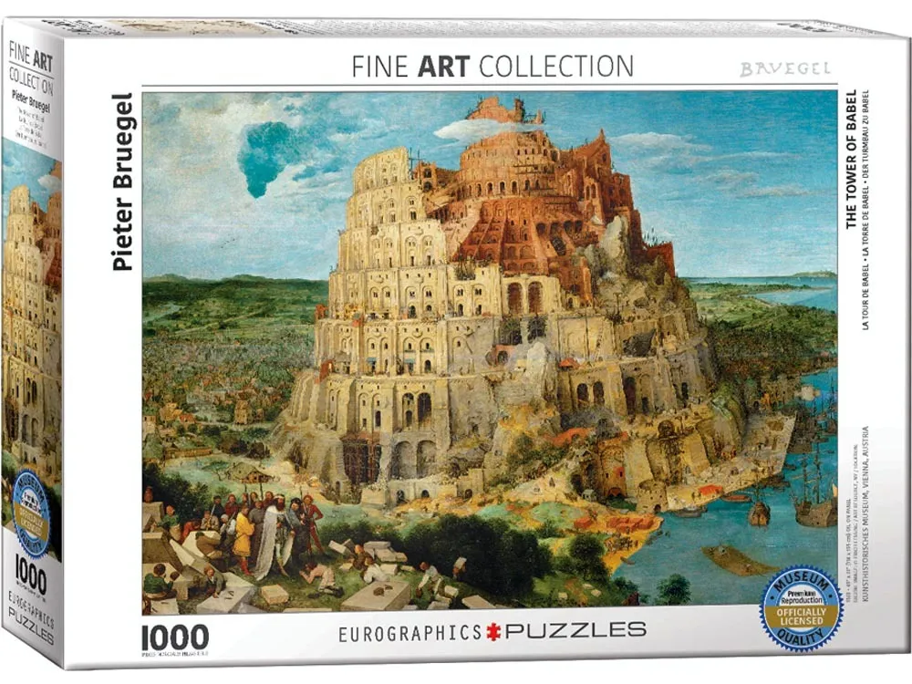 Eurographics The Tower of Babel by Pieter Bruegel 1000-Piece Puzzle This colorful puzzle measures 19.25 x 26.6 in (48.89 x 67.56 cm) completed.