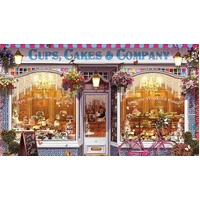 EuroGraphics Cups, Cakes & Company 1000-Piece Puzzle. Delicious baking treats on display at the Gingerbread House. EUROGRAPHICS puzzles are both fun and educational. Puzzle pieces are made from 1.75mm blueboard, and are 100% recyclable, and printed with vegetable-based inks. Finished Puzzle Size: 19.25 x 26.5"."