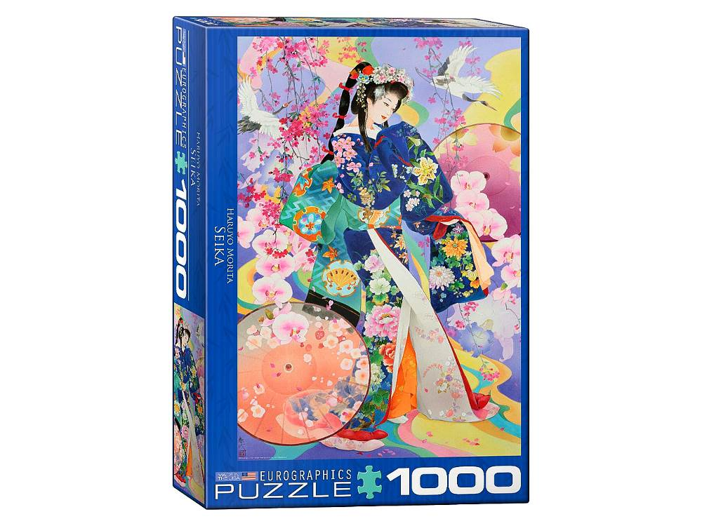 Eurographics Seika by Haruyo Morita 1000-Piece Puzzle This colorful puzzle measures 19.25 x 26.6 in (48.89 x 67.56 cm) completed.