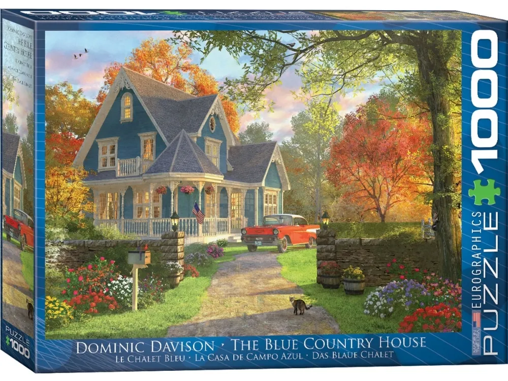 Eurographics The Blue Country House 1000-Piece Puzzle This charming 1000-piece Eurographics puzzle, "The Blue Country House" by Dominic Davison, captures an idyllic autumnal scene.