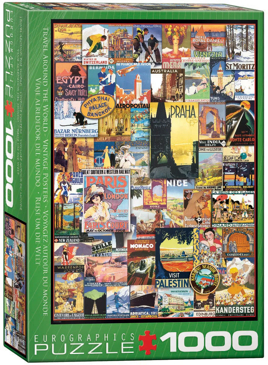 EuroGraphics Travel Around the World Vintage Posters 1000-Piece Puzzle Box size: 10" x 14" x 2.37".
