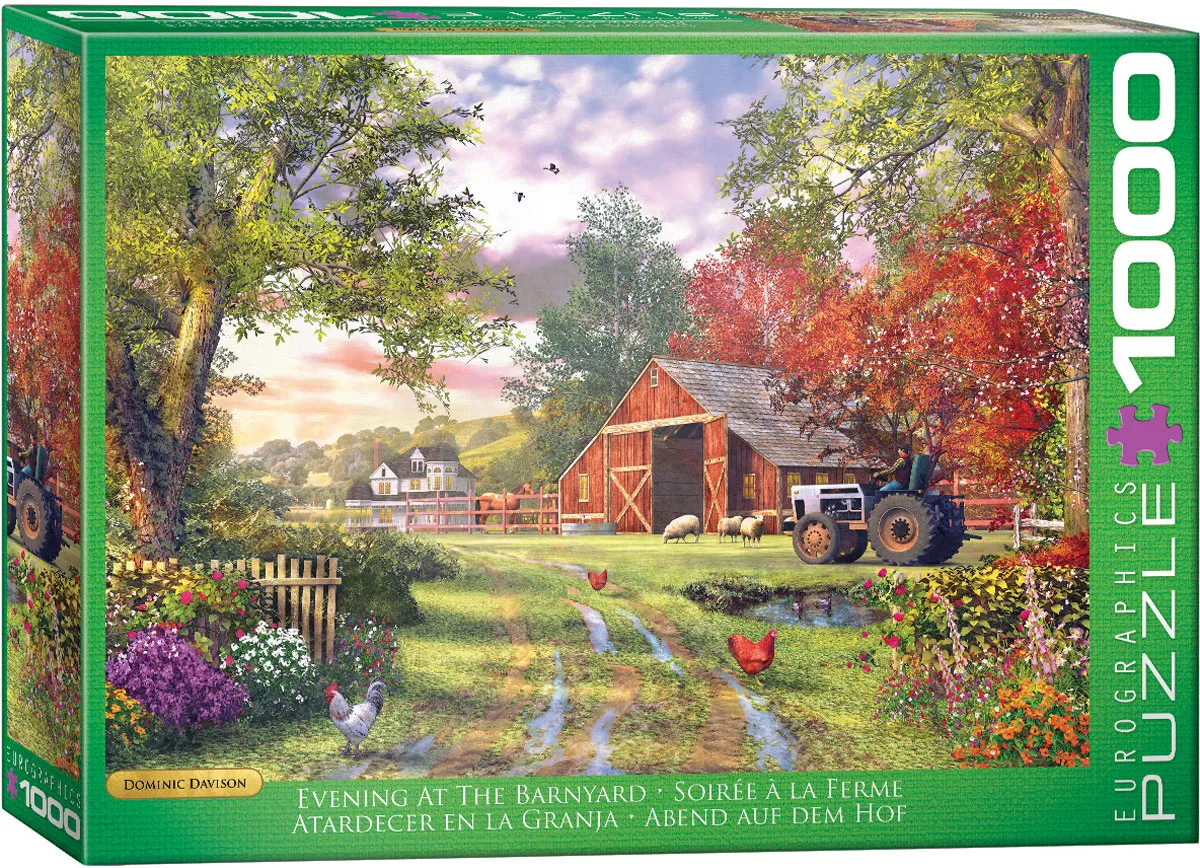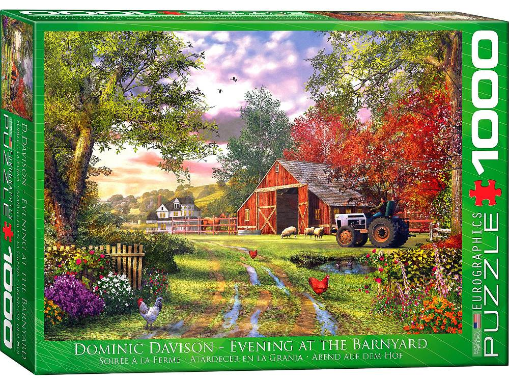 Eurographics Evening at the Barnyard by Dominic Davison 1000-Piece Puzzle This colorful puzzle measures 19.25 x 26.6 in (48.89 x 67.56 cm) completed.