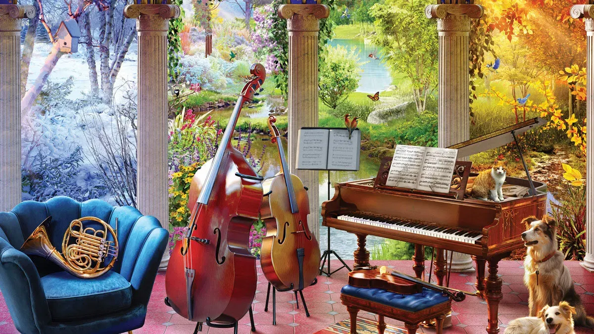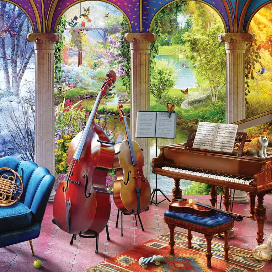 Eurographics Four Seasons of Music 1000 Piece Puzzle, This stunning puzzle brings together the beauty of all four seasons in one captivating scene