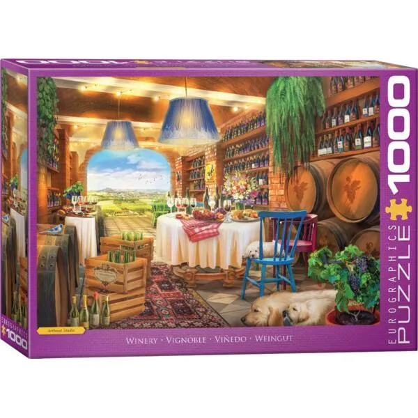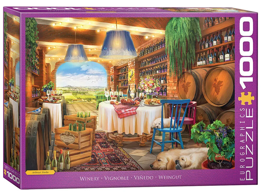 SKU: EUR65846 | Brand: Eurographics Puzzles | Product: Eurographics Winery By Artbeat Studio 1000pc Jigsaw Puzzle This 1000-piece jigsaw puzzle features artwork by Artbeat Studio depicting a winery scene within vineyard landscapes. The precision-cut pieces ensure consistent fit throughout assembly. The puzzle is constructed with premium blueboard and finished with a linen surface, reducing glare and providing durability. Manufacturing uses recycled and responsibly sourced materials. The detailed image captures vineyard rows, rustic barrels, and architectural elements characteristic of wine country environments. Recommended for ages 13 and older.