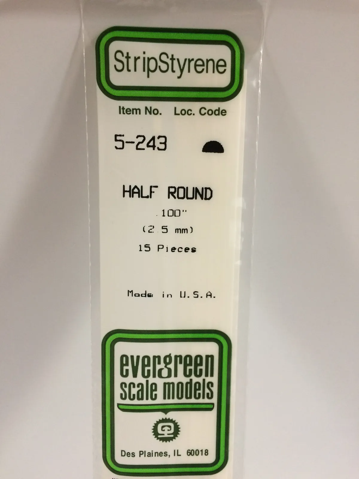 Evergreen White Polystyrene Half Round 0.100 x 14" / 2.5mm x 36cm (3)