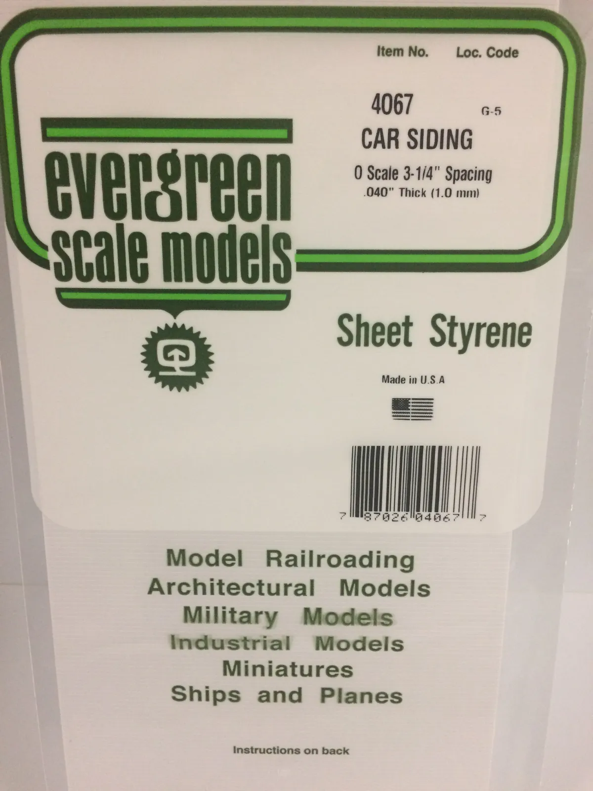 Evergreen White Polystyrene O-Scale Car Siding Sheet 0.040 x 12 x 24" / 1mm x 30cm x 61cm (1)