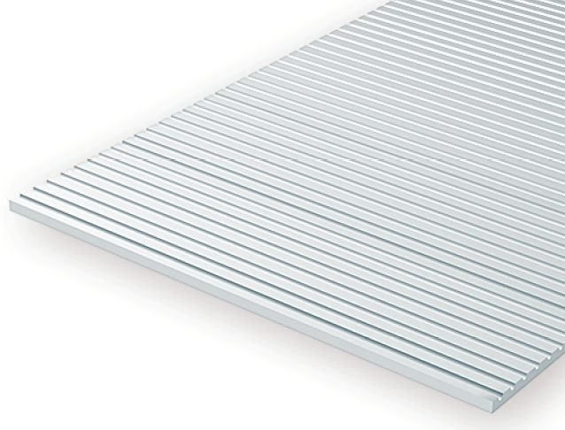 .030" (.75mm)THICK X .047"( 1.21mm) GROOVE SPACING. GROOVE SPACING IS CENTER TO CENTER OF GROOVES. AVAILABLE IN 6" X 12" AND 12" X 24" SHEET SIZES