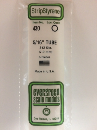 Evergreen White Polystyrene Round Tube 0.312 x 24" / 7.9mm x 61cm (5)
