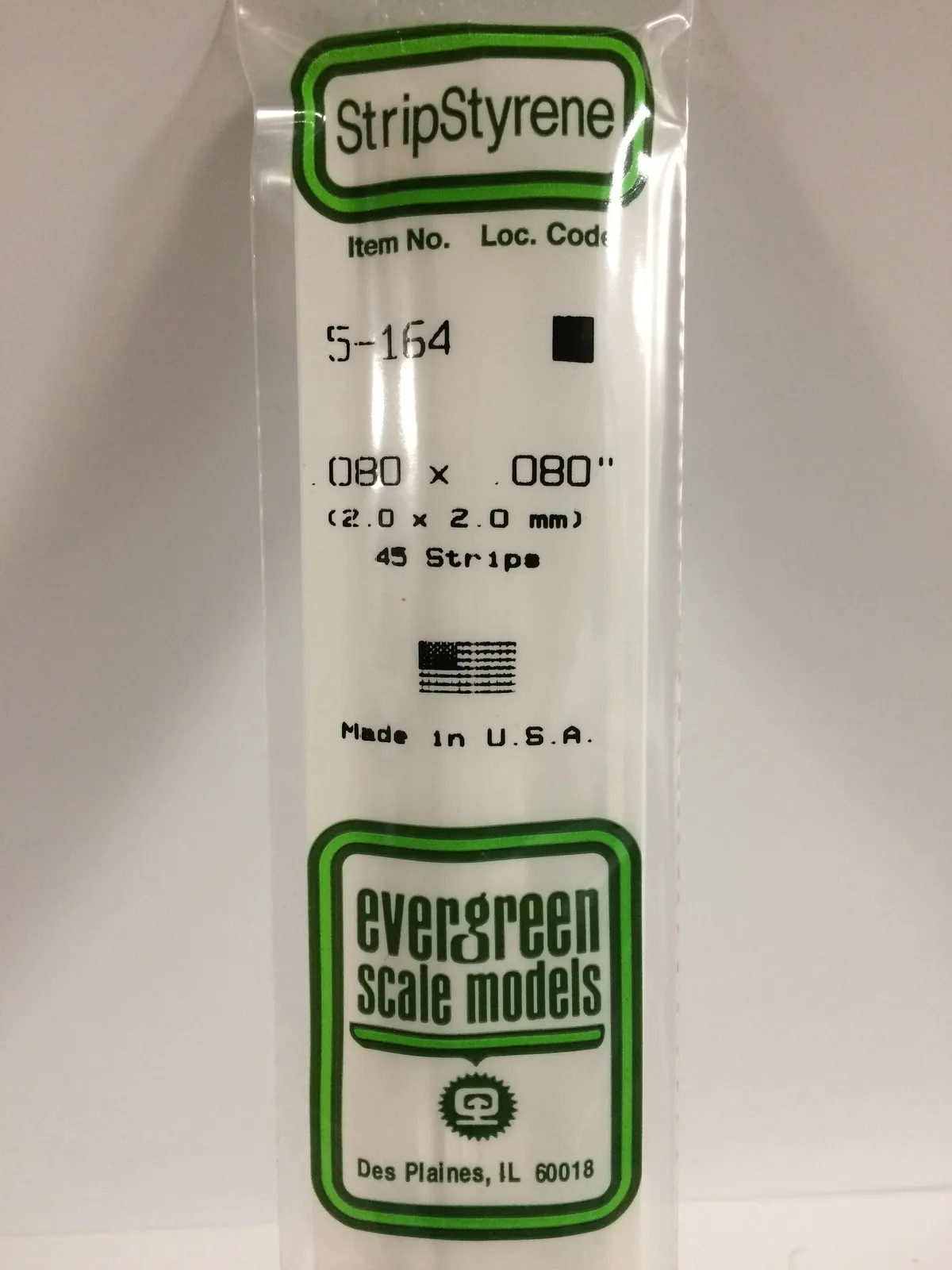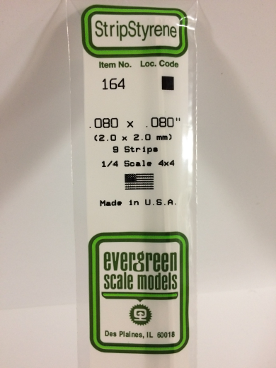 Evergreen White Polystyrene Strip 0.080 x 0.080 x 14" / 2mm x 2mm x 36cm (9)