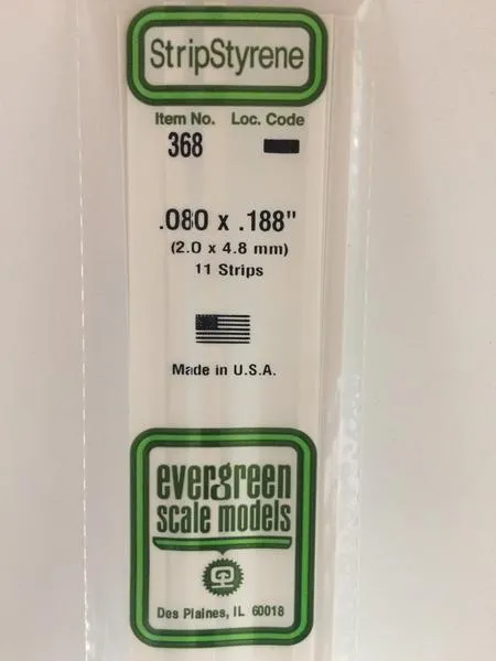 Evergreen White Polystyrene Strip 0.080 x 0.188 x 24" / 2mm x 4.8mm x 61cm (11)