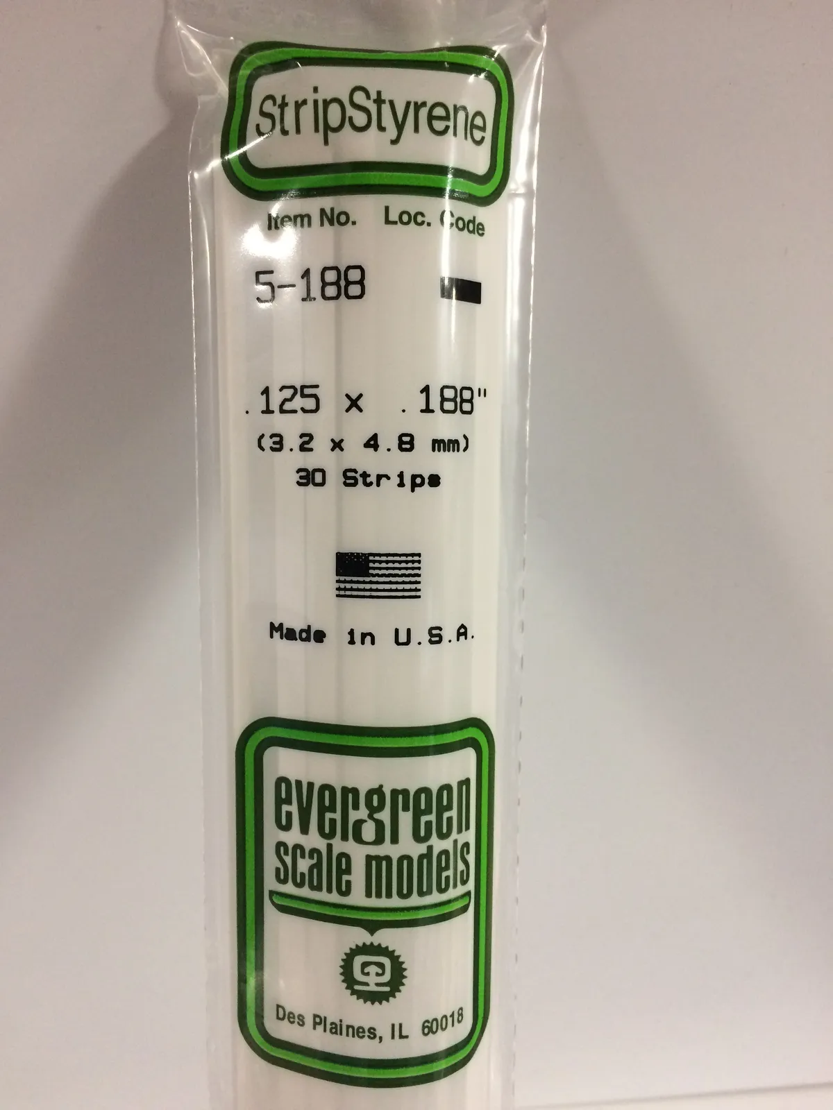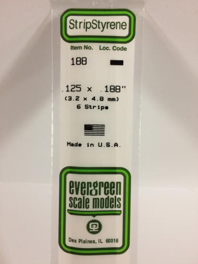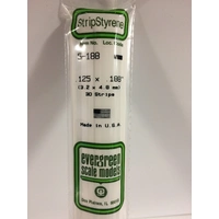 Evergreen White Polystyrene Strip 0.125 x 0.188 x 14" / 3.2mm x 4.8mm x 36cm (6)