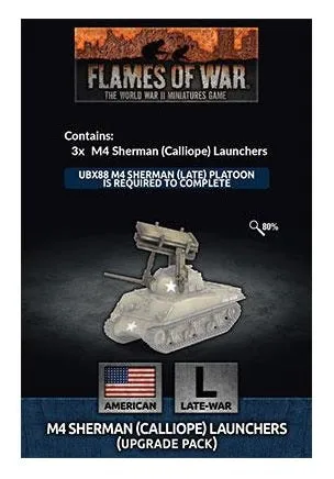 Individually, these rockets may not cause much damage, but group 60 to 240 of them into a single salvo and the enemy will have nowhere to hide! THIS PRODUCT CONTAINS: 3x M4 Sherman (Calliope) Launchers Must be combined with Sherman (Late) Platoon (UBX88) to build a complete model. --- These miniatures are supplied unassembled and unpainted