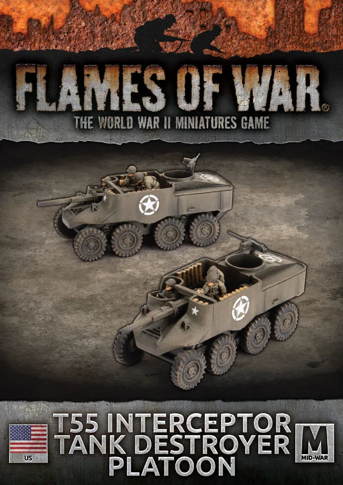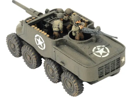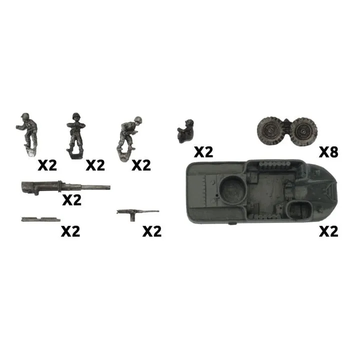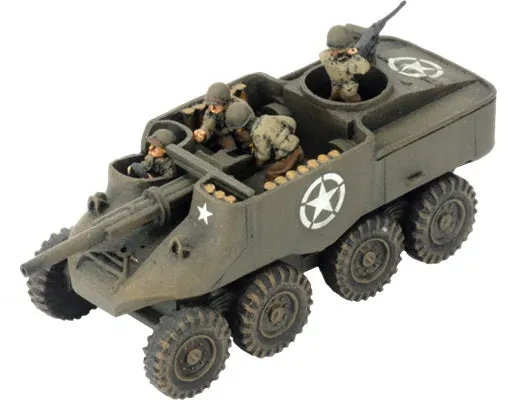 The T55 Gun Motor Carriage has its origins in the experimental 8x8 wheeled desert vehicle designed by Cook Brothers. This unusual design didn’t steer by rotating the wheels on the axle, but rather by rotating the two front axles together in the same way as a railway carriage. Little interest was shown in this all-terrain vehicle by the US Army, but Cook Brothers began work on an experimental tank destroyer known as the Cook Interceptor. In an effort to gain a contract from the army, it was designed to be capable of fulfilling the functions of armoured car, tank destroyer or armoured personnel carrier. In August 1942 they received a contract for further development of the tank destroyer as the T55. After testing, modifications were made to the vehicle resulting in the T55E1. This revised design was sent for further testing at the desert proving ground at Fort Irwin. THIS PRODUCT CONTAINS: 2x resin and metal T55 (3-inch) Tank Destroyers --- These miniatures are supplied unassembled and unpainted