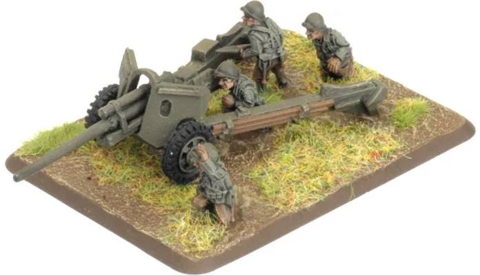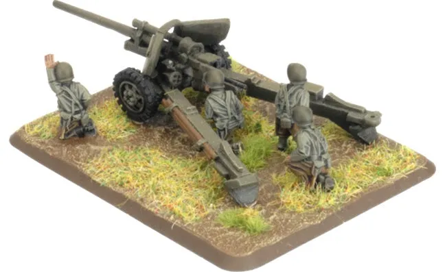 The M5 3-inch gun is the same gun found in the M10 self-propelled gun. It is able to penetrate most German tanks from the front, making them an essential component to any defensive line backed by infantry. The platoon has excellent ambushing potential as well. THIS PRODUCT CONTAINS: 4x plastic and metal 3-inch Gun Teams --- These miniatures are supplied unassembled and unpainted